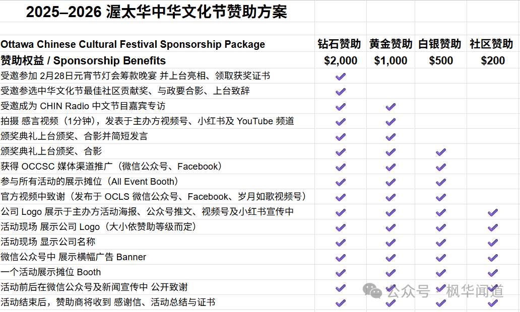 我们诚挚邀请社会各界企业、机构与品牌伙伴携手合作。依托渥太华中华文化节活动的 独特优势,助力品牌实现 高频曝光、精准触达、社会形象提升的多重收益。
