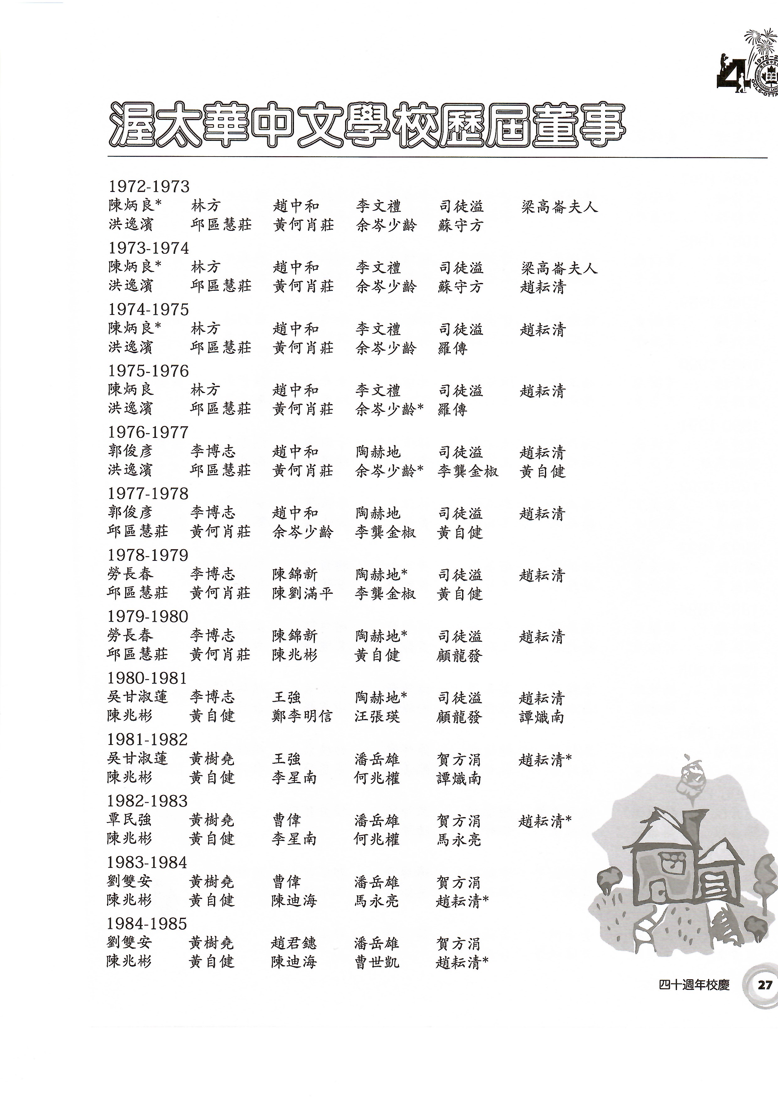 增辦國語、粵語學分班之安省高中文憑(O.A.C.)課程。成立義務家長小組,推動家校合作。出版《辭彙手冊》上、下冊。