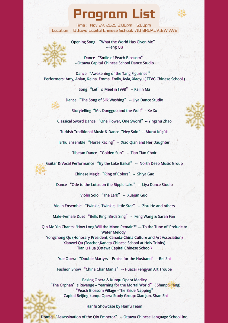 The Ottawa Chinese Cultural Festival has received congratulatory letters from the Prime Minister of Canada, the Premier of Ontario, the Mayor of Ottawa, and a Senator.